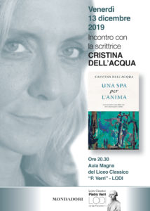 Il Liceo Verri di Lodi , per venerdi 13 dicembre, ore 20.30, organizza un incontro con Cristina dell’Acqua , autrice del testo “Una spa per l’anima” cui sono invitati gli alunni e delle classi terze della scuola Secondaria di Primo Grado insieme alle loro Famiglie.